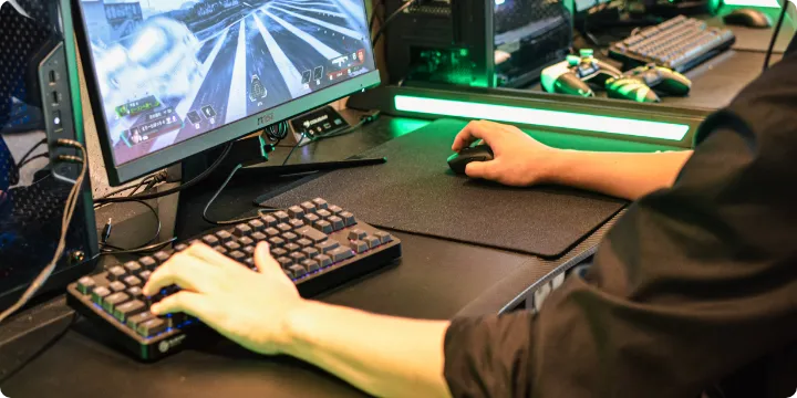 初期設定から、キーボード設定等の基本的な部分から、基礎技術の習得を行います。 またeスポーツ業界知識・業界用語等を指導します。