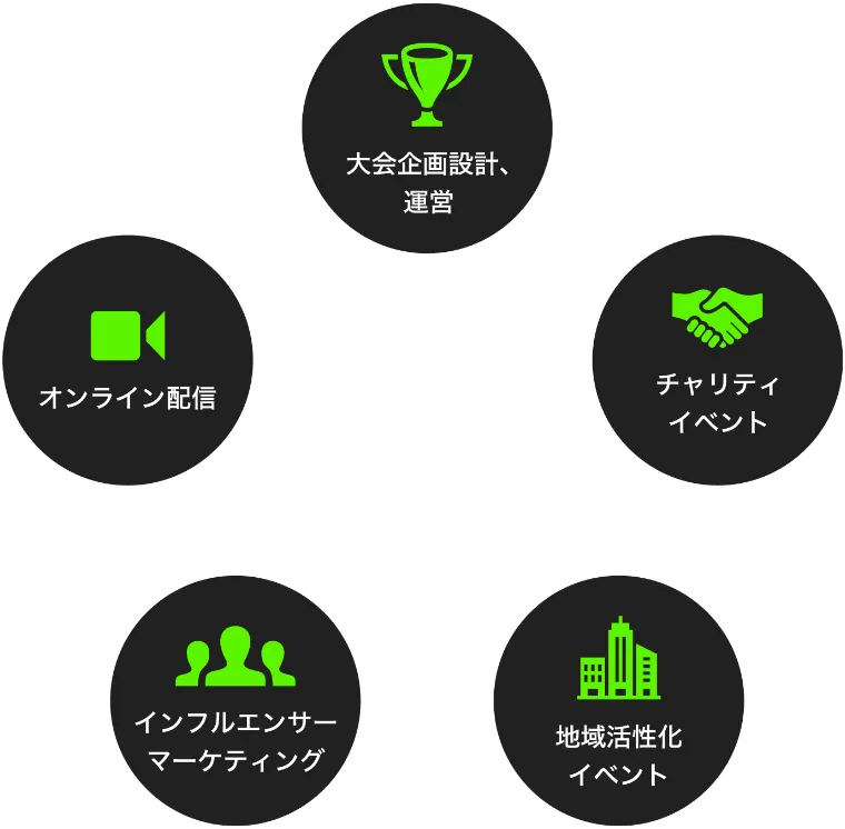 eスポーツを活用したさまざまなサービスを提供しています。 大会の企画設計・運営、オンライン配信サポート、社会貢献を目的としたチャリティイベントの開催、インフルエンサーマーケティングによるプロモーション支援、そして地域の経済活性化を目的としたイベント企画など、幅広い分野でお客様のニーズにお応えします。 これらのサービスを通じて、eスポーツの魅力を最大限に引き出し、企業や地域の発展をサポートいたします。